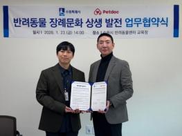 수원시민이 반려동물 장례식장 ‘포포즈 화성2호점’을 이용하면 장례 비용의 10%(최대 5만 원)를 할인받을 수 있다. 수원특례시와 ㈜펫닥(포포즈 화성2호점)은 23일 수원시 반려동물센터에서 ‘반려동물 장