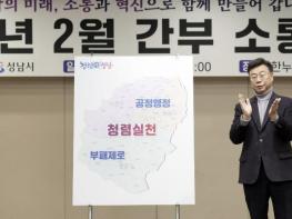 성남시는 4일 오전 8시 간부소통회의에서 신상진 시장을 비롯해 4급 이상 간부공무원과 출자·출연기관 대표들이 참석한 가운데 청렴 실천 의지를 다지는 ‘청렴실천서약식’을 진행했다.이번 청렴실천서약식