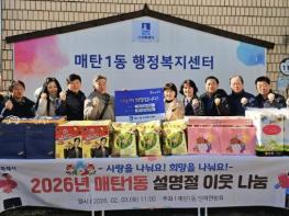 수원특례시 영통구 매탄1동은 지난 3일 설 명절을 맞이해 관내 저소득층 300여 세대에 후원물품을 전달하는 이웃돕기 나눔 전달식을 개최했다.이번 설 명절 이웃돕기 후원은 매탄1동 9개 단체(주민자치회,