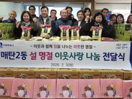 수원시 영통구 매탄2동 행정복지센터는 지난 3일, 설 명절을 맞아 관내 어려운 이웃을 위한 ‘이웃사랑 나눔 전달식’을 개최했다.이번 전달식에는 매탄2동 단체장협의회, 인근 상가, 주민들이 정성껏 마음