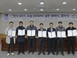 권선구는 대형 공사장과 손잡고 ‘먼지 OUT, 소음 DOWN’ 환경개선 나선다.수원시 권선구는 지난 1월 27일 구청 상황실에서 관내 대형공사장 6개소와 비산먼지 및 소음 저감을 위한 ‘먼지 OUT, 소음 DOWN!