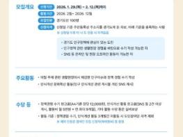 경기도가 정책 대상자가 직접 정책개선에 참여하는 ‘제3기 인구정책 도민참여단’ 100명을 공개 모집한다.참여단은 결혼‧임신‧출산, 양육‧돌봄, 청년, 중‧장년(베이비붐) 4개 분야에서 활동한다. 생활