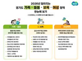 경기도는 올해 여성폭력, 가족‧돌봄, 보육 분야에 걸쳐 총 16개 제도를 개선하거나 신규 도입한다고 4일 밝혔다.이번 개편은 맞벌이 가정, 한부모가정, 영유아, 아동 등 생활밀착형 지원을 강화해 돌봄과