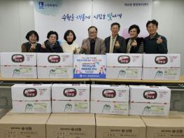 수원시 팔달구 매교동은 지난 30일, 수원동부교회신협본점에서 설명절을 맞아 관내 어려운 이웃들이 따뜻한 명절을 보낼 수 있도록 백미 4kg 40포와 생필품(고무장갑, 지퍼백 등) 5박스를 매교동 행정복지센