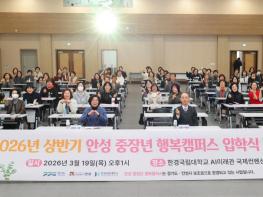 안성시는 3월 19일 오후 1시 한경국립대학교 미래융합기술연구센터 국제컨벤션센터에서 “2026년 안성 중장년 행복캠퍼스 상반기 정규과정 입학식을 성황리에 개최했다.이번 행사는 안성 중장년 행복캠퍼스