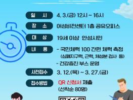 안성시보건소는 ‘안성 시민의 날’을 맞아 시민의 건강 증진과 올바른 생활 습관 형성을 돕기 위한 ‘시민 체력 측정 행사’를 개최한다고 밝혔다.이번 행사는 오는 4월 3일 오후 12시부터 4시까지 안성시