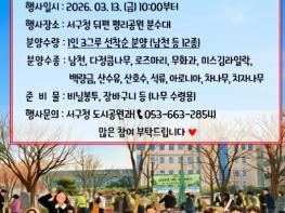 대구 서구는 오는 13일 금요일 오전 10시부터 서구청 뒤편 평리공원에서 ‘2026년 나무 나누어주기 행사’를 개최한다고 10일 밝혔다. 서구청은 12종의 나무(남천, 다정큼나무, 로즈마리, 무화과, 미스김라