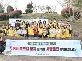 울산 중구가 3월 10일 오후 1시 장현저류지 일대에서 민관합동 두꺼비 찻길 사고(로드킬) 방지 활동을 펼쳤다.이번 활동에는 김영길 중구청장과 담당 공무원, 황방산두꺼비봉사단 단원 등 30여 명이 참여했