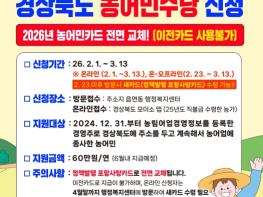 포항시는 지역 내 농어업인을 대상으로 ‘2026년 농어민수당’을 내달 1일부터 3월 13일까지 온라인과 오프라인으로 신청받는다. 올해 농어민수당의 가장 중요한 변화는 지급 수단인 ‘농어민수당카드’의
