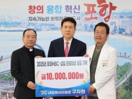 포항시는 9일 시청 대외협력실에서 지역 기반 의료·돌봄 연계 강화를 위한 기탁금 전달식을 개최했다. 이번 기탁은 구자현 내집에서의원 원장이 지역 기반 의료·돌봄 연계 활동 등 공로를 인정받아 제30회