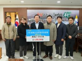 (사)봉화군교육발전위원회는 봉화군수의사회(회장 하종성)가 지난 6일 지역 인재 육성을 위한 장학금 500만 원을 전달했다고 밝혔다. 이번 기탁은 지금까지 11년째 꾸준히 이어오고 있으며, 지역 교육 발전