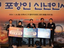지난 26일 서울 더 플라자호텔에서 열린 ‘2026년 재경 포항인 신년인사회’에서 재경 출향인들이 고향 발전을 염원하는 마음을 담아 고향사랑기부금을 기탁하며 뜨거운 고향 사랑을 실천했다. 이날 행사에