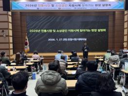 포항시는 27일 시청 대회의실에서 대구경북지방중소벤처기업청 주관으로 ‘2026년 전통시장·소상공인 찾아가는 현장설명회’를 개최하며 지역 상인들의 정책 접근성 강화에 나섰다. 이번 설명회는 중기청이