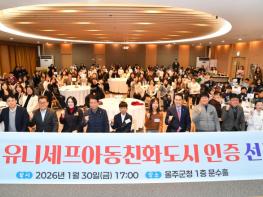 울산 울주군이 30일 군청 문수홀에서 이순걸 울주군수와 최길영 울주군의회 의장, 서범수 국회의원 등 100여명이 참석한 가운데 ‘아동친화도시 인증 선포식’을 개최했다.이번 선포식은 울주군의 유니세프
