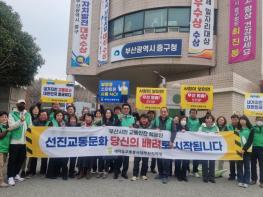 부산광역시중구새마을회(회장 이형목)는 지난 19일 중구청 앞에서 ‘부산시민 교통안전 캠페인’을 펼쳤다. 회원들은 현수막과 피켓을 이용해 시민들에게 교통법규 준수의 중요성을 알리고, 안전한 보행환경