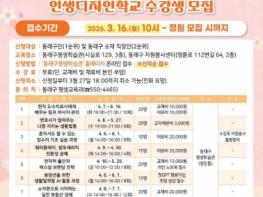 부산 동래구는 3050세대의 생애 도약을 지원하기 위해 오는 4월부터 7월까지 평생교육 프로그램 ‘인생디자인학교’를 운영한다고 밝혔다. ‘인생디자인학교’는 배움의 즐거움과 평생교육을 통한 성장, 새