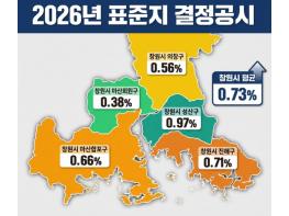 창원특례시는 2026년 표준지 공시지가가 전년 대비 평균 0.73% 상승했다고 밝혔다. 이는 전국 평균 상승률인 3.35%와 경상남도 평균 상승률 1.16%에 비해 낮은 수치로, 창원시의 지가 변동폭이 상대적으로