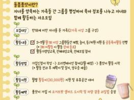 산청군가족센터는 20일 공동육아나눔터 운영 일환으로 돌봄품앗이 활동 가족을 모집한다고 밝혔다.공동육아나눔터는 지역사회 내 이웃 주민과 함께 자녀를 돌보는 공간으로 핵가족화로 약화 된 가족 돌봄 기