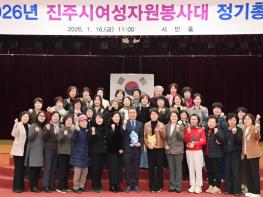 진주시여성자원봉사대는 16일 오전 시청 시민홀에서 ‘2026년 정기총회’를 개최했다.이날 정기총회에는 서신애 대장과 임원진, 각 읍면동 여성자원봉사대장 등 30여 명이 참석해 이임하는 읍면동 대장에 감