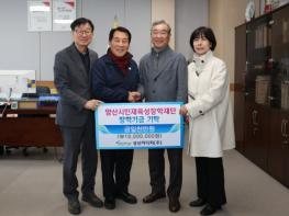 양산시인재육성장학재단(이사장 이희종)은 지난 9일 상신이디피(주)(대표 김일부)가 장학재단(이사장 이희종)에 장학금 1,000만원을 기탁했다고 밝혔다.양산시 상북면에 소재한 상신이디피(주)는 알루미늄