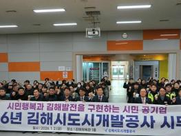 김해시도시개발공사는 지난 2일 2026년 새해 시무식에서 전 직원이 청렴실천과 안전보건 결의를 다지며 힘차게 새해 첫 업무를 시작했다고 밝혔다. 이날 시무식은 필수 근무 인원을 제외한 전 임직원이 참석