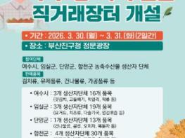 부산진구는 3월 30일부터 31일까지 부산진구 정문광장에서 ‘자매결연지 농축수산물 직거래장터’를 개최한다고 밝혔다.이번 행사는 자매결연지인 여수시, 임실군, 단양군, 합천군과 함께 진행되며, 각 지역