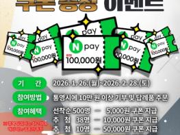 통영시는 2026년 설을 맞아 오는 2월 28일까지 고향사랑기부제 참여 확산을 위한 네이버페이 쿠폰 증정 이벤트를 추진한다고 26일 밝혔다.이번 이벤트는 통영시 최초로 추진하는 모바일 상품권 증정 이벤트
