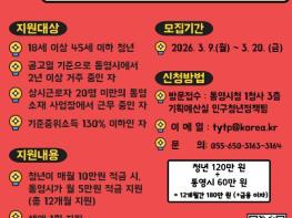 통영시는 청년의 자산 형성을 지원하고 경제적 자립 기반을 마련하기 위해 '2026년 통영시 To Young 청년적금 지원 사업' 참여자를 모집한다고 10일 밝혔다.이번 사업은 청년이 매월 10만 원을 적립하면 통