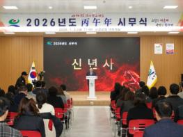 고성군은 1월 2일, 군청 5층 대회의실에서 2026년도 시무식을 열고 새해 군정 운영의 힘찬 출발을 알렸다. 이날 시무식은 국민의례를 시작으로 반부패·청렴 선서, 시상, 군수 신년사, 직원과의 신년인사 순