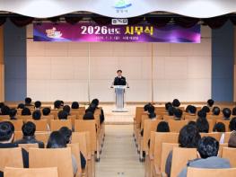 밀양시는 2일 시청 대강당에서 본청 및 읍면동, 직속 기관, 산하기관 직원 등 300여 명이 참석한 가운데 2026년 시무식을 개최하고 새해 업무를 시작했다. 시무식은 국민의례, 기관 및 시민 표창장 수여, 공