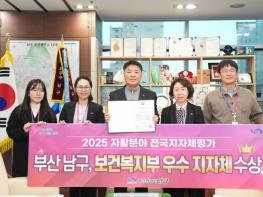 부산 남구는'2025년 보건복지부 자활 분야 전국 지자체 평가'에서 우수 지자체상을 수상했다고 밝혔다. 이번 평가는 보건복지부에서 전국 지자체를 대상으로 ▲자활근로 참여자 증가율 ▲자활 성공률 ▲ 자