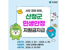 산청군이 지속되는 고물가와 국제 정세 불안에 따른 고유가로 위축된 지역경제를 살리고, 군민의 가계 부담을 완화하기 위해 ‘산청군 민생안정지원금’을 지급한다고 20일 밝혔다. 이번 지원금은 '산청군