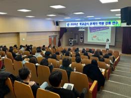 충청북도영동교육지원청은 28일 영동교육지원청 학교지원센터 3층 시청각실에서 관내 유·초·중·고등학교 조리사, 조리실무사 70여 명을 대상으로 ‘2026년 학교급식 관계자 역량강화 연수’를 시행했다.이날