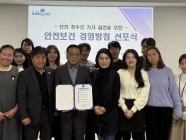 충북인재평생교육진흥원(원장 유태종)은 12일 신청사에서 전 직원이 함께하는 안전문화 실천의 새출발을 알리는 안전보건 경영방침 선포식을 개최했다.이번 안전보건 경영방침을 통해 ▲자율적인 안전관리체