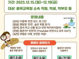 충청북도교육청은 15일부터 19일까지 5일간, 충북교육가족이 함께하는 2025년 산업재해 예방 공감동행 캠페인 주간을 운영한다고 밝혔다.캠페인은 다소 딱딱하고 어렵게 느껴질 수 있는 산업안전보건 활동을