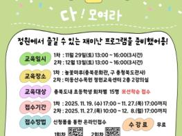 충청북도 정원교육센터는 어린이들이 자연의 소중함을 체험하고 생태 감수성 및 협동심을 기를 수 있는 ‘어린이 정원학교(미리 만나는 봄)’ 프로그램을 오는 11월 29일과 12월 13일 두 차례에 걸쳐 운영한