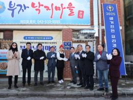 충북 진천군은 28일 2025년도 제23회 생거진천 요리경연대회에서 대상을 차지한 이월면 부자낙지마을에서‘요리왕 현판식’을 개최했다. 대상 수상 업소인 부자낙지마을에는 ‘2025년 생거진천 요리경연대