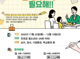 충북 진천군청소년상담복지센터(센터장 배이정)는 지역 내 청소년 심리⋅정서, 환경을 파악하기 위한 현황 조사 기간을 오는 12월 19일까지 연장한다고 밝혔다. 이번 조사는 진천군 청소년들의 전반적인 상