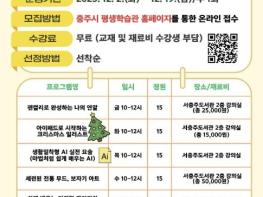 서충주도서관은 12월 한 달간 연말 맞이 크리스마스 특별 행사를 운영한다고 밝혔다.도서관은 마술공연, 원데이클래스, 전시, 포토존, 체험, 이벤트 등 다채로운 프로그램으로 시민들에게 따뜻한 연말 분위