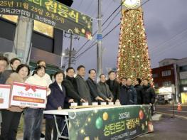 충북 괴산군은 지난 25일 오후 괴산읍 시계탑 앞에서 2025 괴산 성탄트리 점등식을 개최했다.행사에는 송인헌 괴산군수, 김낙영 괴산군의회 의장, 백현주 괴산군기독교연합회장, 김춘수 괴산문화원장 등 내