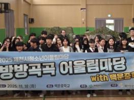 제천청소년문화의집은 지난 18일 백운중학교에서 2025 제천청소년어울림마당의 마지막 행사인 ‘방방곡곡 어울림마당 with 백운중학교’를 성황리에 개최했다. 이번 행사에는 백운중학교 학생 44명이 참여해