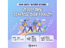 충주시는 건강한 공직문화를 조성하고 직원들의 체력 증진을 위해 ‘2026년 상반기 슬기로운 걷기 생활’ 챌린지를 본격 운영한다고 9일 밝혔다.이번 챌린지는 오는 5월 31일까지 약 3개월간 진행되며, 충주