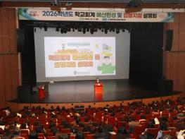 충청북도교육청은 11일, 교육문화원에서 도내 유‧초‧중‧고‧특수학교 행정실장 및 교감, 업무담당자 등 800여 명을 대상으로 2026학년도 학교회계 예산편성 및 집행지침 설명회를 개최했다. 이번 설명회