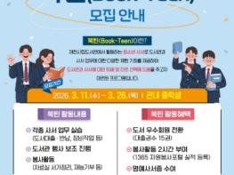 제천시립도서관은 2026년 제5기 청소년 사서 ‘북틴(book-teen)’을 모집한다.청소년 사서 북틴은 관내 중학생 10명을 대상으로 사서 업무 체험 기회를 제공해 청소년들의 진로 탐색에 도움을 주기 위해 마