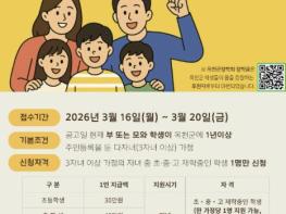 옥천군은 다자녀 가정의 교육 기회를 확대하고 학업지원을 강화하기 위해 2026년 다자녀 장학금 신청을 받는다고 밝혔다.다자녀 장학금은 2025년 신설된 사업으로, 다자녀 가구의 경제적 부담을 덜고 인구감