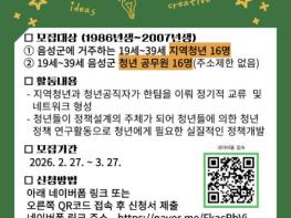 음성군은 청년공무원과 지역청년이 협력하여 청년에 의한 ‘진짜’ 청년정책을 만드는 청년 참여기구 ‘안팎 청년들 3기’ 참여자를 모집한다고 밝혔다.‘안팎 청년들’은 정책을 직접 설계하고 시행하는 청