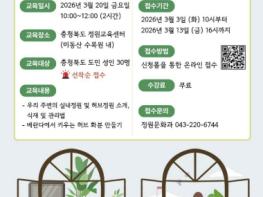 충청북도 정원교육센터가 도민들이 베란다를 작은 정원으로 조성하며 정원의 가치를 느끼고, 생활 속 정원 문화를 확산할 수 있도록 ‘베란다 정원 가꾸기(봄을 깨우는 향기)’ 교육을 운영한다. 이번 교육