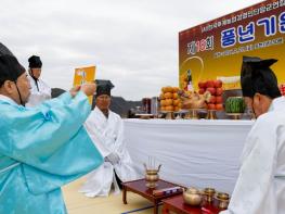 “올해는 농사 좀 잘되게 해주셔유.”단양군 농업인들의 간절한 바람이 도담삼봉 아래에 울려 퍼졌다.(사)한국후계농업경영인 단양군연합회는 27일 단양팔경의 하나인 도담삼봉 주차장에서 ‘제18회 풍년기