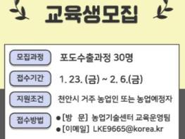 천안시농업기술센터는 내달 6일까지 ‘2026년도 천안시농업대학’ 교육생 30명을 모집한다고 23일 밝혔다. 천안시농업대학은 시의 농업을 선도할 신지식 농업인 양성을 목표로 운영되고 있으며, 현재까지 1