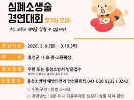 홍성소방서는 심정지 환자 발생 시 신속한 응급처치로 생명을 보호하고 군민의 심폐소생술(CPR) 역량을 높이기 위해 ‘2026년 일반인 심폐소생술 경연대회’ 참가팀을 모집한다고 11일 밝혔다.이번 경연대회